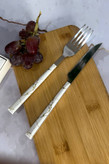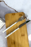 ست کارد و چنگال ماربل سفید، با دسته یکتکه و طراحی خاص سنگ مرمر