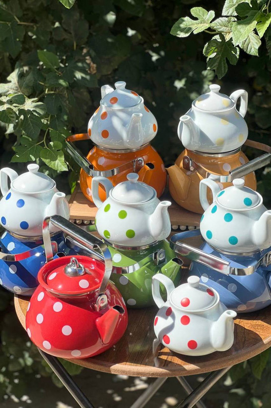 ست کتری و قوری لعابی توپی طرح ترک خالدار