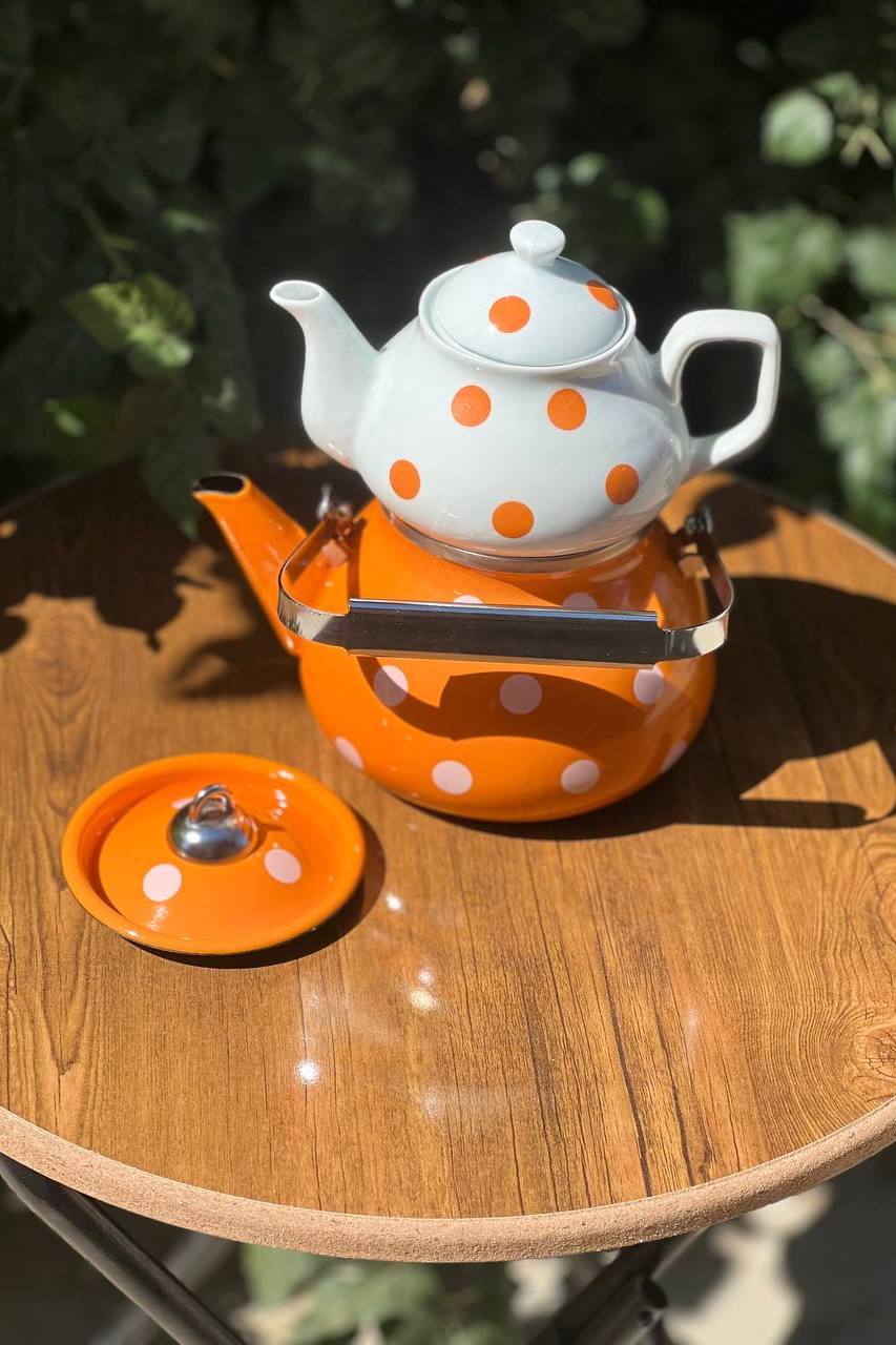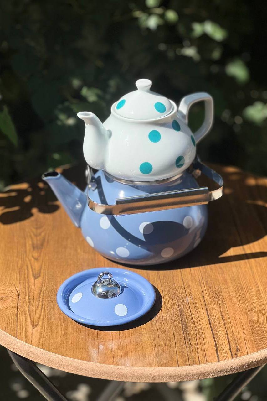 ست کتری و قوری لعابی توپی طرح ترک خالدار